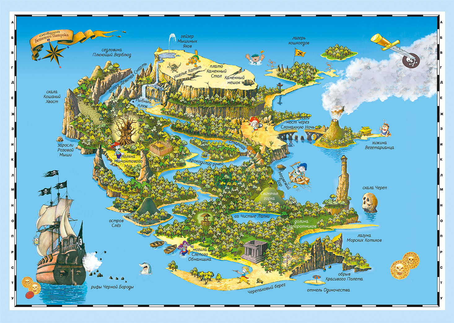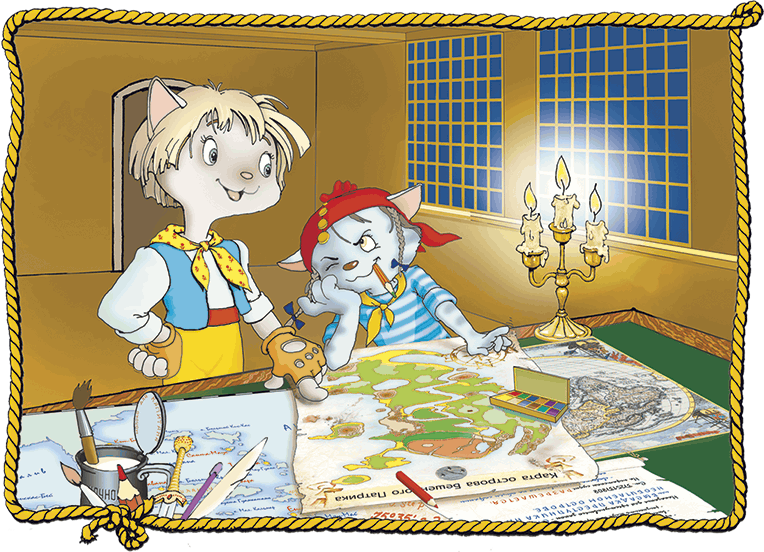 – Да, карта вышла на славу, – не стал отрицать Воробушек, растянув мордочку в довольной улыбке. – Всего одна ночь работы, а получилось точь-в-точь как в книге! Береговая линия, рельеф суши… Вот маяк, а это фарватер. Здесь – скалы. А тут – затонувшее судно.