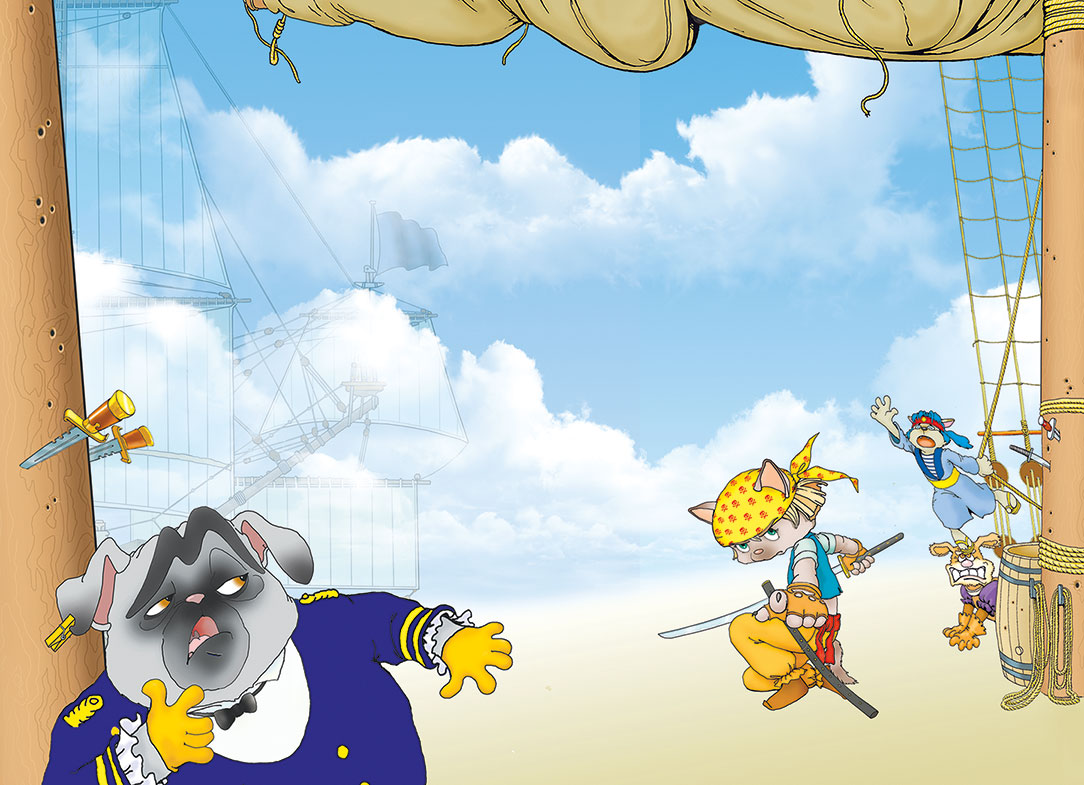 Сообразив, что поединка капитанов не будет, Джен устремилась к Грязному Гарри. Один за другим она метнула оба кинжала, но мопс ловко прятался: то за бочкой, то за снастями. Не так уж глуп он был, капитан Псов Океана! Отступая, он заманил Джен в ловушку. Разъяренная, малышка не заметила, как оказалась у трапа, одна и без оружия. А перед ней – глаза в глаза – маленькая, но злобная псина, вот-вот готовая разорвать клыками добычу.