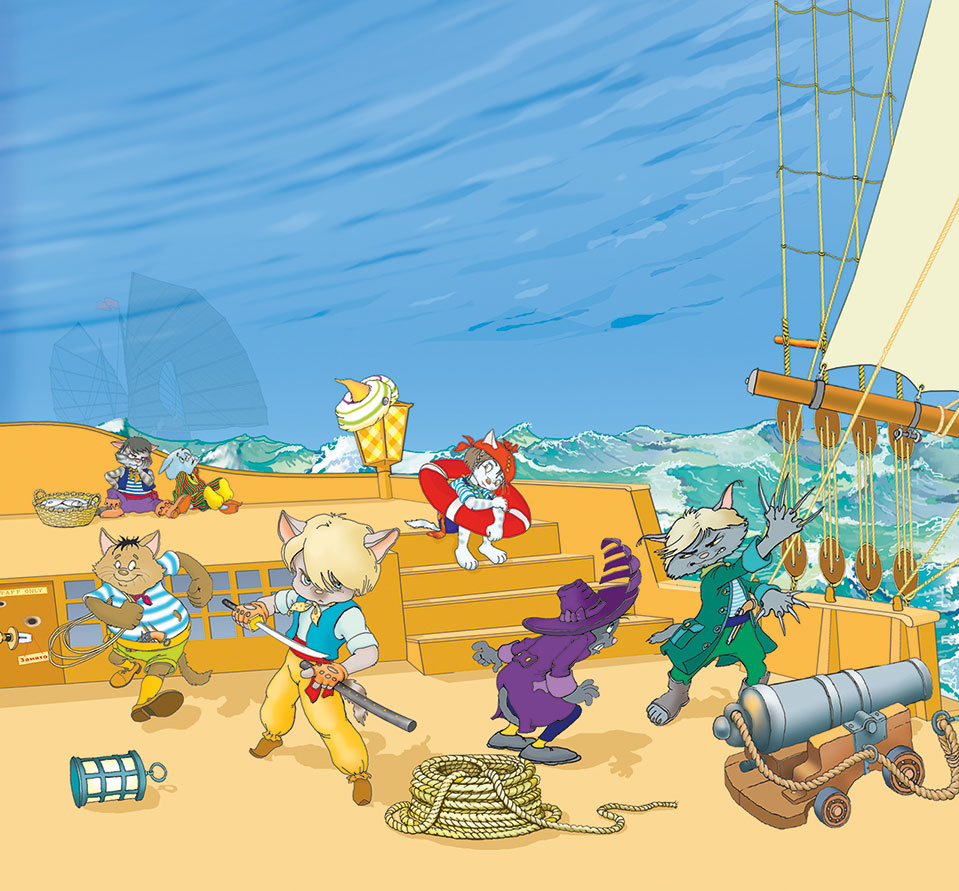 Подхватив приятеля, черный кот поспешил к полузатопленному трюму.