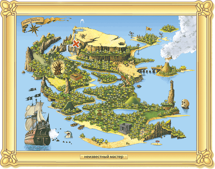 Но даже больше, чем потеря ключа, малышку тревожила зияющая пустотой рама. Что же в ней было? Дженифыр отчаянно пыталась вспомнить. Пейзаж? Нет, не пейзаж. Портрет? Снова нет! Быть может, карта? Да, точно!.. Но что на ней изображалось? Море, суша, небо?.. «Мне нужна карта!» – кричал со спасательной шлюпки Грязный Гарри. «Достаньте мне карту Корноухого!» – требовал он от своих пиратов, надрываясь хриплым лаем.