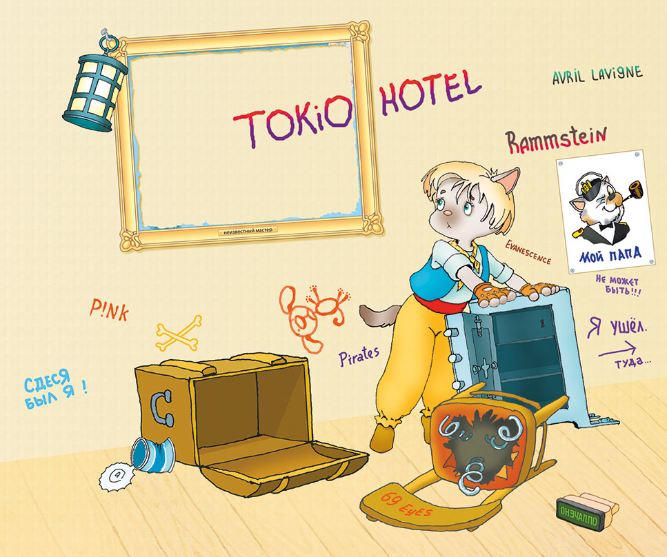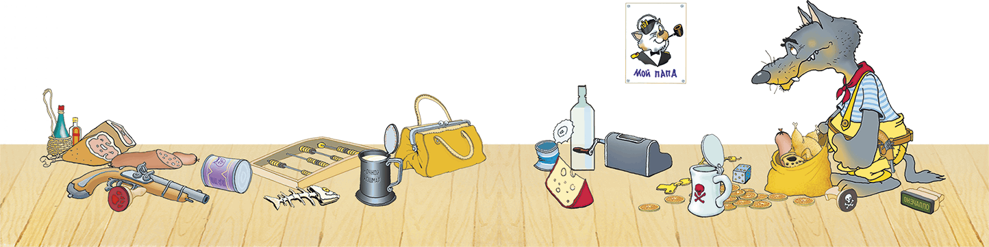 Пока на верхней палубе грохотали базуки и мушкеты, пес-пират Билли Бомс, пошатываясь от качки и распевая во всю глотку популярный романс, осматривал каюту Корноухого.