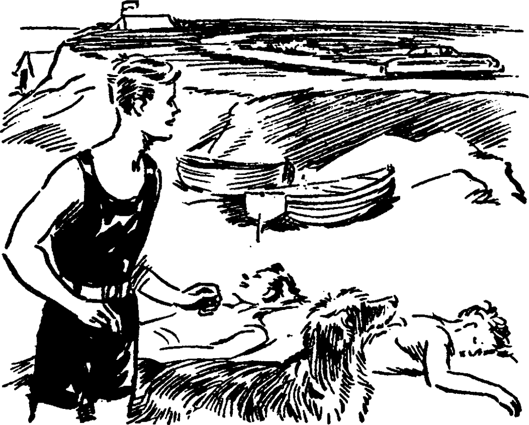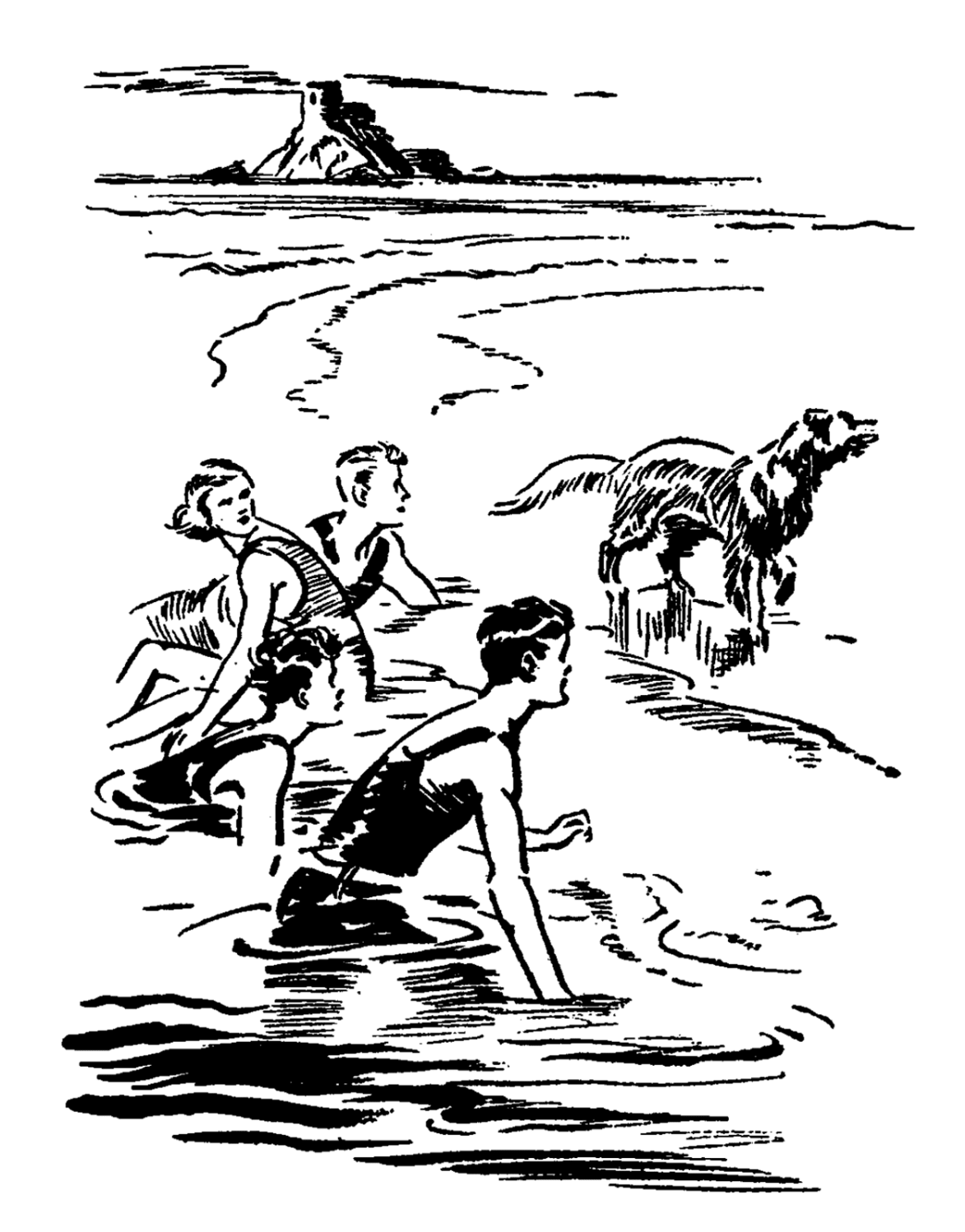 Вдруг Тимми залаял. Он не пошёл с ними в воду и лежал у края прибоя. Он считал, что валяться в море совершенно ни к чему. Джордж подняла голову.