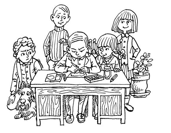 – У тебя так хорошо выходит, Пип, – вздохнула Бетси, заглянув ему через плечо. – А вот у меня не получается не заезжать за линии.