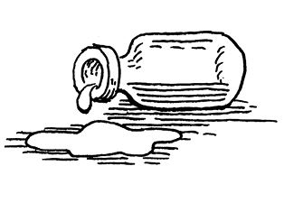 Бетси наклонилась поближе, чтобы лучше всё разглядеть. Но внезапно она потеряла равновесие, неловко покачнулась и резко затормозила, опершись на стол. Стол задрожал, бутылочка с чернилами перевернулась, покатилась к краю стола, а её содержимое вылилось на пол, расплывшись круглой маленькой лужицей возле Бастера.