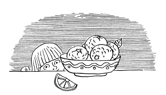 Бетси поставила на стол большое блюдо с апельсинами и приготовилась смотреть. Она с любопытством наблюдала, как Фатти берёт апельсин, делает в нём маленькую дырочку и выдавливает жёлтый сок в чашку.