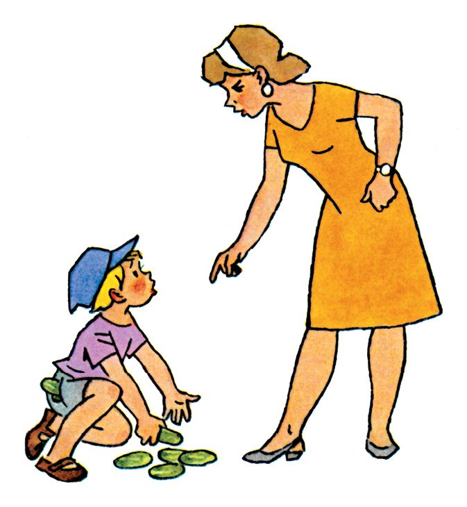 – Ну как тебе не стыдно! – говорит мама. – Ведь дедушка за эти огурцы отвечает. Узнают, что огурцы пропали, скажут, что дедушка виноват. Хорошо будет?