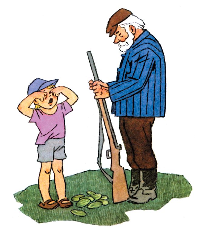 – А вам, дедушка, ничего не будет за то, что огурец пропал?