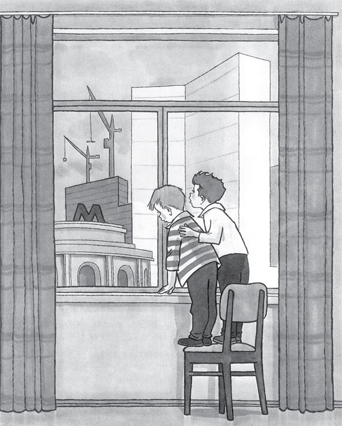 Костя и Шурик пролезли под стульями и уселись на свои места.