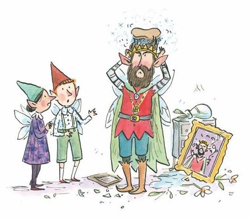 Пикси подскочили от неожиданности, а когда услышали, что случилось, и вовсе побледнели и кинулись во дворец сломя голову. При виде спальни их охватил ужас: всё перевёрнуто вверх дном, люстры, картины и остальные вещи валяются на полу, а щётка старается отскрести пузырёк с лекарством, которое король принимает три раза в день!