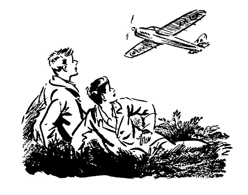 – Самолёт! – воскликнул Джулиан, заметив над холмом маленький аэроплан. – Это, наверное, с аэродрома! Ого! Уже пять минут десятого! Мы проспали почти двенадцать часов!