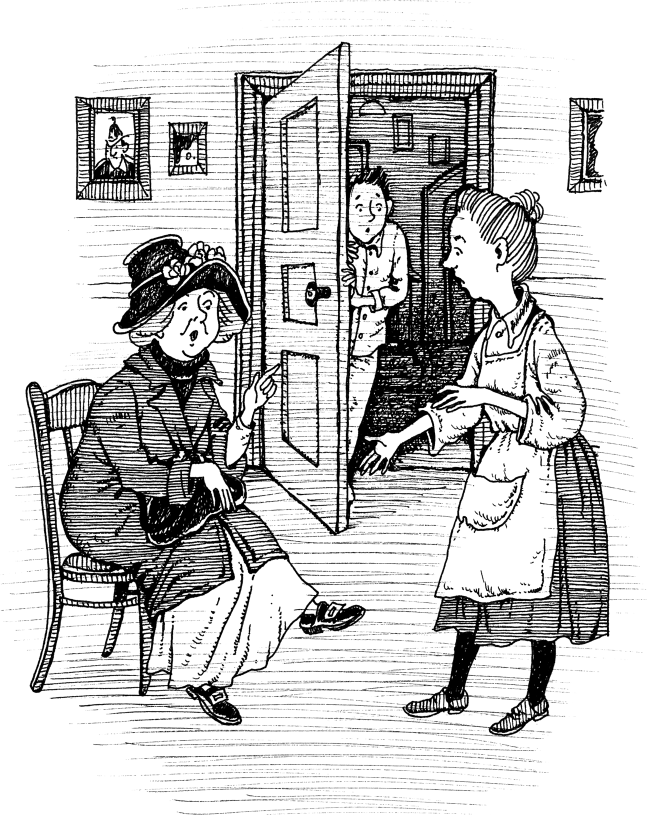 – Право, не знаю, – ответила женщина. – Он отошёл по делам. Желаете подождать? Я горничная, убираюсь здесь по утрам. А это мой сын Берт. У него каникулы, и я беру его с собой в помощь.