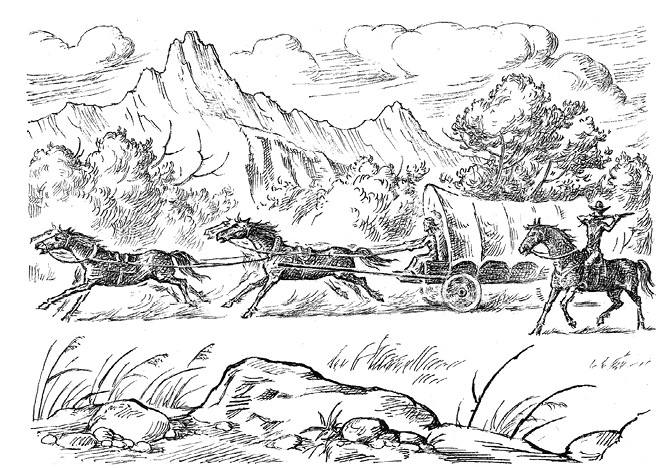 Вдруг до нее донесся какой-то шум. Это был стук копыт! За ее фургоном скакали лошади. Неужели ее догоняют какие-то всадники? Друзья это или враги? Или это кони, потерявшие седоков, бесцельно носятся туда-сюда и, может быть, завидев фургон, по привычке решают держаться поблизости?