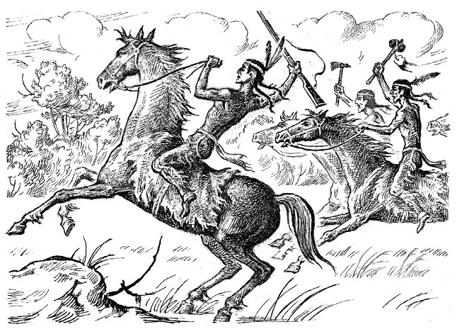 Словно черные пятна, кружились перед ее внутренним взором призрачные образы всадников, появившихся из ночной тьмы. Она знала, что это индейцы. «Бесси, ты же правая пристяжная, беги, тогда и остальные за тобой побегут!» Но мулы так устали, что могли идти только рысью.