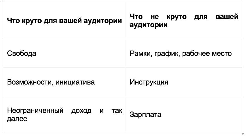 Вам нужно привлекать людей из левой колонки и отталкивать тех, кто из правой. Иначе вы можете получить тысячи подписчиков, которые никогда ничего не купит.