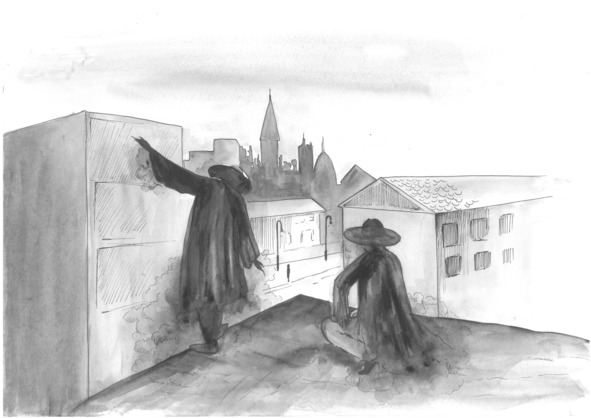 От нечего делать Гест принялся вышагивать по крыше, намеренно ступая на самый край, балансируя, словно он бесстрашный эквилибрист. Посмотрев на своё отражение в пыльном стекле окна дома напротив, он перевёл взгляд на отражение собрата. Безликая чернота Айрика сосредоточенно смотрела вниз. Со стороны казалось, он здесь прячется и замер в ожидании, опасаясь неведомой угрозы. Но что или кто может обидеть жнеца, кроме Творца и Матери-Вселенной, что распределяет «предназначенные» души, щедро отдавая частичку от каждой в качестве вознаграждения за проделанную работу, за сопровождение?
