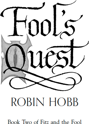He was so changed. He had been a man who loved beauty in all its forms. His tailored garments, the ornaments in his chambers, the hangings for his bed and windows, even the tie that had held back his immaculately groomed hair had all been chosen with harmony and fashion in mind. But that man was gone. He had come back to me as a ragbag scarecrow of a man. The flesh of his face had fallen to skin-coated bones. Battered, blinded, wearing the scars of torture, the Fool had been so transformed by hardship that I hadn’t recognized him. Gone was the lithe and limber jester with the mocking smile. Gone, too, elegant Lord Golden with his fine clothes and aristocratic ways. I was left with this cadaverous wretch.