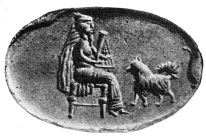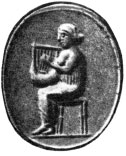 Женщина, играющая на лире. Скарабеоид из голубого халцедона (конец V в. до н. э.). Государственные музеи, Берлин. Воспроизведено по: Никулина Н. М. Искусство Ионии и Ахеменидского Ирана. М., 1994. Рис. 126.