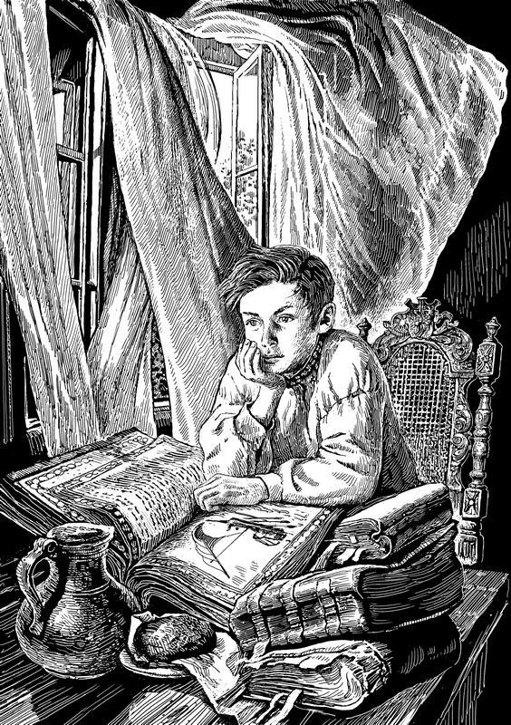 Вася остался один. Белела раскрытая книга на большом дубовом столе.