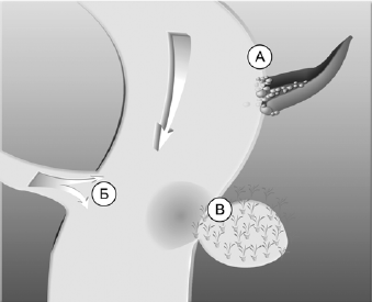 Рыба видит плывущую к ней муху (рис. 7). Когда муха находится за пределами зрительного конуса (а), виден только фрагмент, находящийся под водой, и если нет ветра – его отражение на поверхности воды. Затем рыба начинает различать крылышки мухи (б), причем в результате преломления лучей они выглядят искривленными. После того как мушка попадает в область зрительного конуса, она становится видна вся целиком (в). Отражение же подводной части мухи о поверхность воды пропадает.