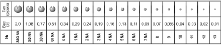 Грузила для поплавочной снасти друг от друга отличаются размером, а вернее, весом и формой. На рис. 44 изображены слева направо стандартная круглая дробинка, плоские (а скорее цилиндрические) грузила styl и half-styls, а также оливка. Маркировка круглых и плоских грузил отличается, поэтому будет приведена в табл. 2–4.