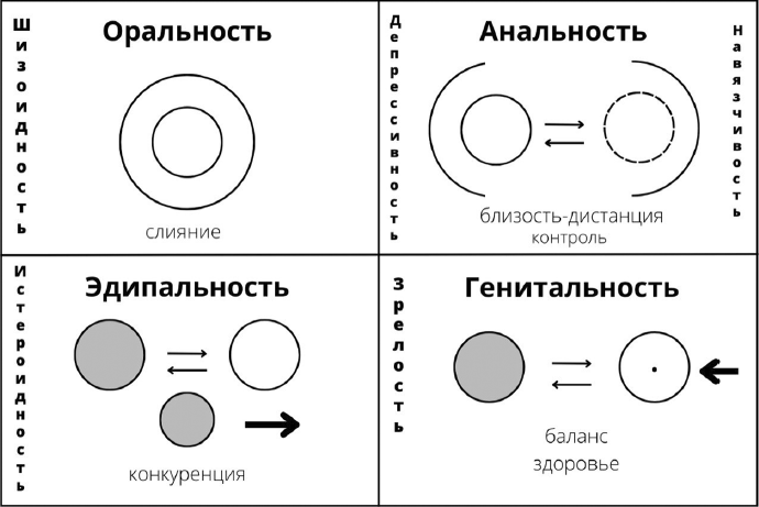 Схема «4 квадрата» (фазы психосексуального развития ребёнка и типы невротической адаптации)