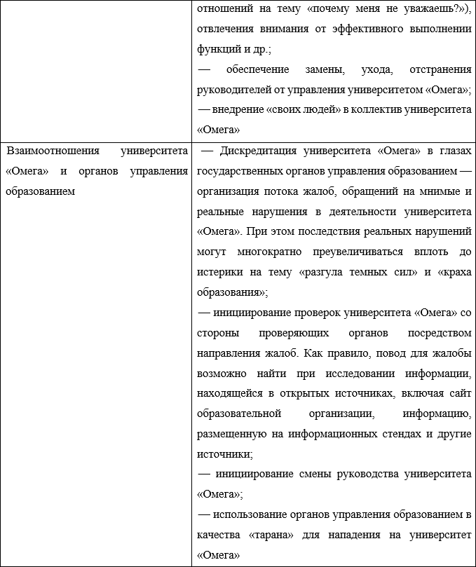 – нанесение неприемлемого ущерба деловой репутации университета «Омега», дискредитация его деятельности и его руководства;