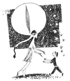 Побуждаемая смутной тревогой, мама решила проведать сына. Взяла мобильный телефон и, подсвечивая экраном путь, зашла в его комнату. На груди Семена свернулась огромная черная змея. Мама хотела позвать отца, но не смогла ни сдвинуться с места, ни выдавить из себя ни звука. Она набрала его номер и стала ждать. Вскоре папа прибежал в комнату.