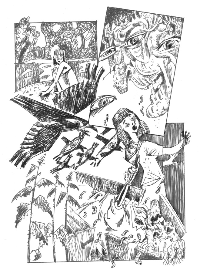 Перед ней возник яркий свет и проход в земле. Таня шагнула и увидела рассыпавшийся гроб, в нем лежал полуистлевший труп, на макушке рос белый пух волос.