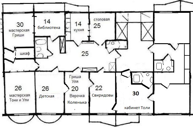 Как ни артачился Свиридов ему все-таки пришлось сдаться и путем присоединения части соседней квартиры – части квартиры охраны – ему оборудовали громадный кабинет.