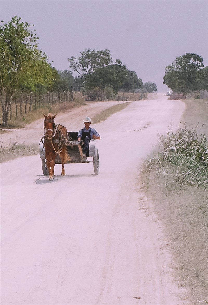 Отяжелевшее красное солнце скрылось за деревьями. Я вышел на дорогу, но уже начал представлять, как вернусь обратно в лес и поставлю палатку на радость обезьянам. Вдруг на дороге показалась двуколка. Лошадью правил фермер в шляпе и клетчатой рубашке. Он приветливо кивнул – залезай. Мы разговорились. Родной язык у меннонитов немецкий, но этот фермер знал испанский.