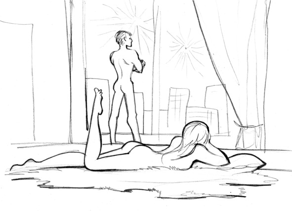Вадим стоял спиной к ней около окна и считал фейерверки. Один, два, три. Он насчитал пятнадцать штук. Почувствовав Надино движение, он обернулся и улыбнулся девушке. Из одежды на нём были только массивные часы на левой руке. Он смотрелся как с обложки журнала – все кубики на своих местах, и увидев его, Надя снова почувствовала тянущее томление в мышцах, но часы на голом парне показались ей комичными, и она невольно заулыбалась.