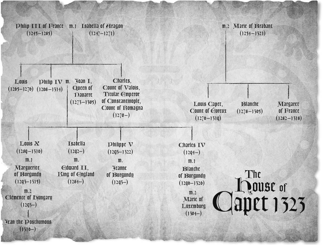 Philip the Fair having died as if struck down by lightning, and his eldest son, Louis X, having been murdered after eighteen months on the throne, Philippe V, his second son, seemed destined for a long reign. But now six years had gone by, and Philippe V had died in his turn before attaining the age of thirty.