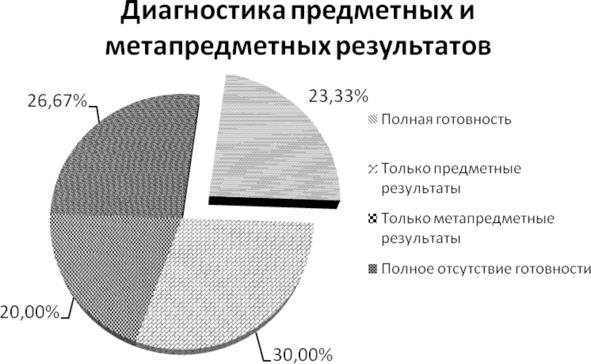 Полную готовность к диагностике предметных и метапредметных результатов обучения детей с ограниченными возможностями здоровья показали только 23,33% педагогов.
