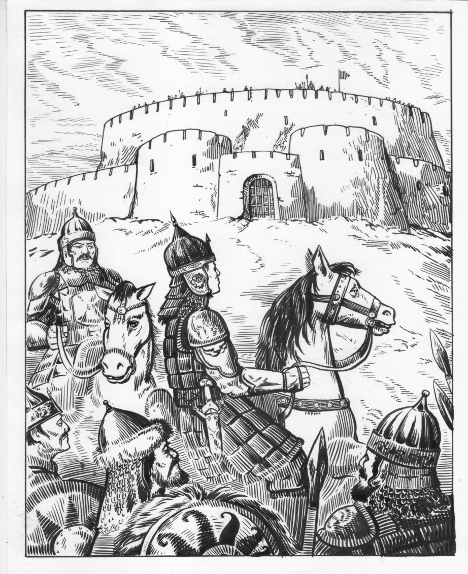 Уже в который раз я обогнул крепость, изучая ее и тщетно стараясь отыскать хоть небольшой изъян или слабую сторону. Укрепление было окружено двумя рядами стен, построенных в форме правильного круга. Сама цитадель высотой около тридцати метров находилась в центре круга и была такой же геометрической формы. Крепость хоть и была небольшого размера, но уместила по данным наблюдателей не меньше семи тысяч хорезмийских воинов. По моему приказу кочевники обложили замок плотным кольцом, держась от нее на расстоянии километра.