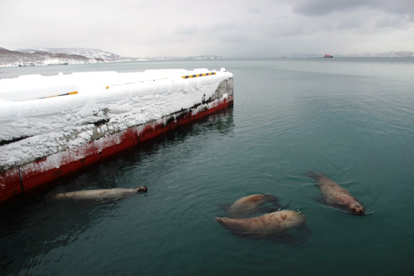 Окружающие пасторали промзоны, новостроек, заснеженных сопок, моря, кораблей на контрасте с живыми морскими львами. Кто-то мне потом рассказал, что они здесь поселились несколько лет назад, почему, на сколько – не известно. Просто однажды выбрали это заброшенное место в большом городе для себя и остались.