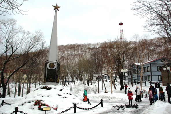 Поднялась вверх по ступеням в поисках смотровой площадки на сопке, рядом с Памятником Славы, установленном в 1881 году.