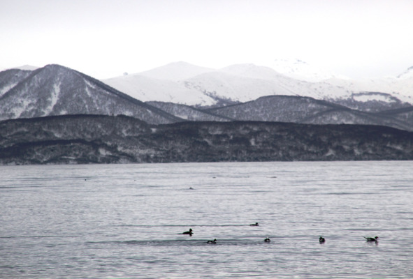 Вид на рыболовный порт и море хорош, но мешали березы и сугробы, зато наблюдала полет белоплечего орлана.