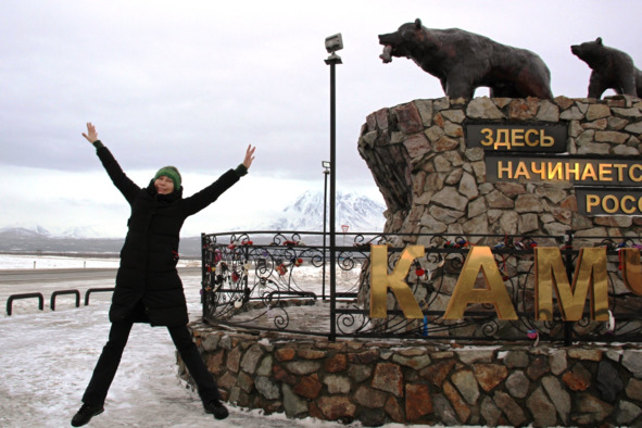 Ногами знакомилась с картой, глазами разглядывала этот маленький городок. На местной администрации висел плакат про бесплатный гектар земли. Заброшенное здание окружал забор с прекрасными граффити. Памятник победителям в Великой Отечественной Войне. Для любителей селфи – фото фон «Я люблю Камчатку» рядом с панельной пятиэтажкой цвета фуксии. Рынок и новая красивая церковь.