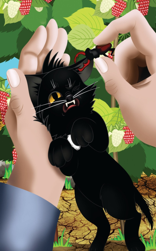 – Ааа! Помогите! – Котёнок от страха стал бегать по поляне. – Он схватил меня за ухо!