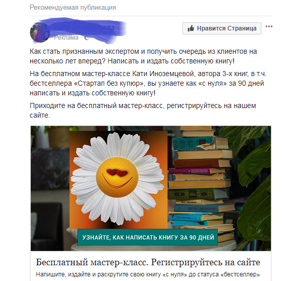 Рисунок №3: Реклама вебинара Екатерины Иноземцевоей «Узнайте, как написать книгу за 90 дней»