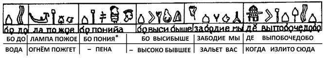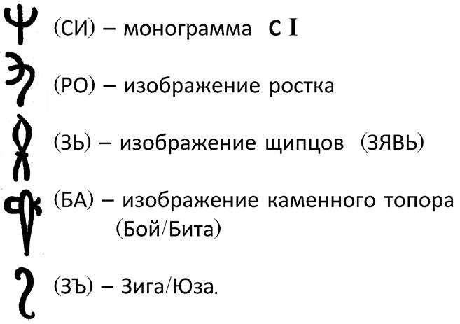 В конце этого отступления хочу обратить внимание вот на что: фонема «РА» (свет/Солнце) на табличках обозначается знаком привычного для нас оконного переплёта/РАМЫ. Выходит, что оконная рама и в Африке, и 4000 лет тому назад как была рамой, так и осталась. То же можно сказать и о самолётах, и о ракетах. Ведь не форма выбирает содержание, а содержание требует определённой формы, а если точнее, то определённых форм (квадратные колёса, даже если они вдруг на сегодняшний день окажутся самыми модными, не найдут применения).