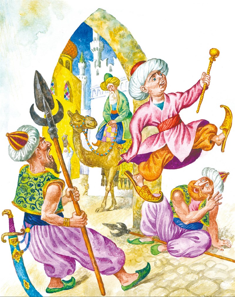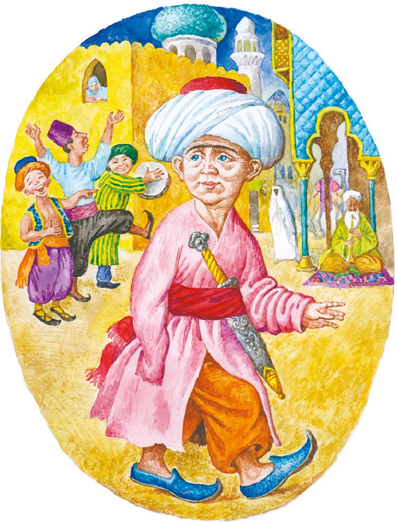 Но вот он поправил тюрбан, отряхнул одежду, пучком травы почистил запылённые башмаки и только после этого прошёл через главные городские ворота и не торопясь пошёл по улице.