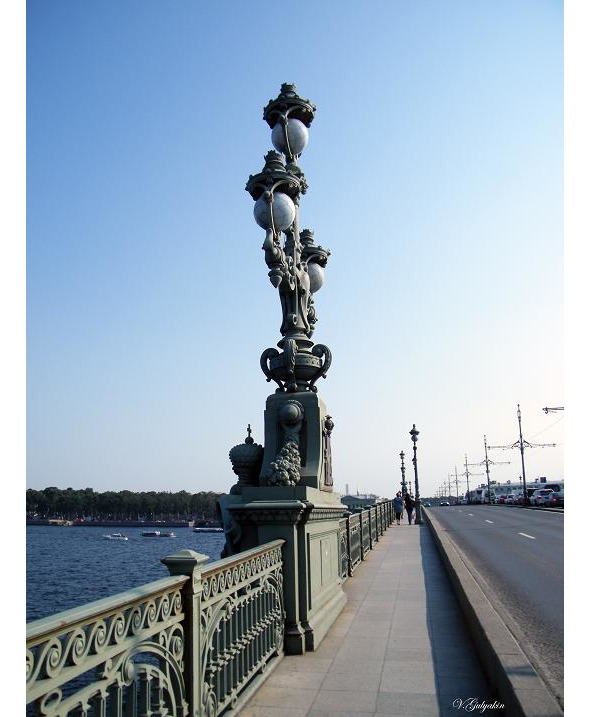 On one of pile ice-cutting blocks before the bridge the figure of “the hare who escaped from a flood” established here to the 300 anniversary of the city is well distinguishable. On one of legends, during a flood the hare found rescue, having jumped on a boot to the tsar Peter… Here, tourists “for luck” also throw coins, trying to get a hare directly into a pan!