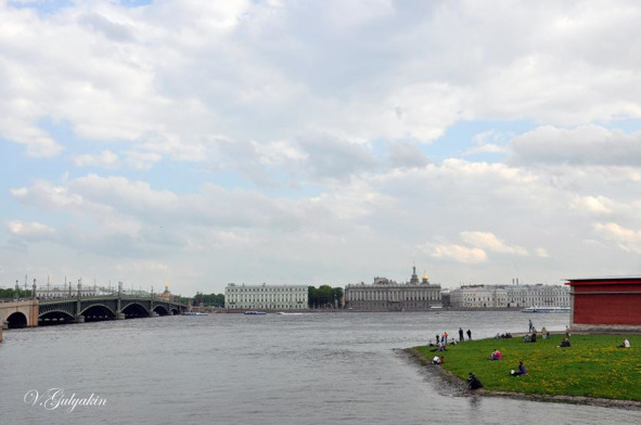 To the left of The Trinity Bridge the strip of greens of The Summer garden is seen (it is already left coast of Neva)
