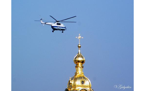 We get into the helicopter…