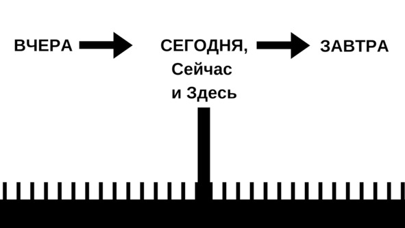 Время в коучинге измеримо, что, собственно, вполне логично и разделяется на Вчера (Прошлое), Сегодня (Настоящее, Сейчас и Здесь), Завтра (Будущее).
