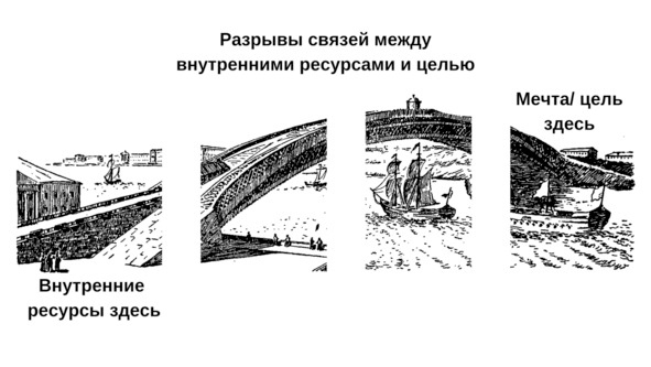В таких случаях можно говорить о наличии (активном наличии) неких «разрывов» между нашими внутренними ресурсами и той задачей, которую мы себе поставили.