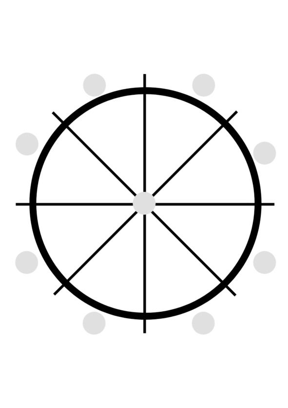 Перед вами лист (см. рисунок «Колесо Баланса»), на котором нарисован круг, разделённый на восемь равных частей. В центре и по окружности есть маленькие серые кругляшки, на них пока пристально не смотрим.