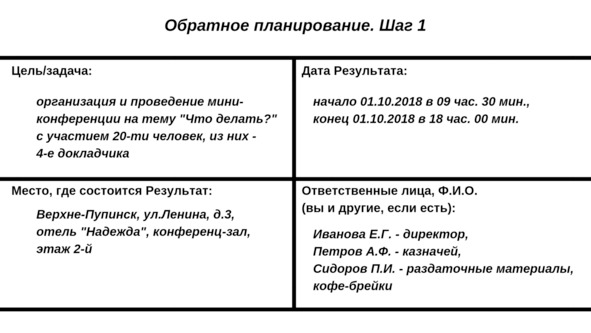 На первом листе А4 начертите и заполните таблицу так, как это показано на рисунке 1 (не переписывайте с рисунка данные, это пример, а вы работаете с вашей задачей и с вашими данными, – не смейтесь, на корпоративных тренингах и не такое бывает).