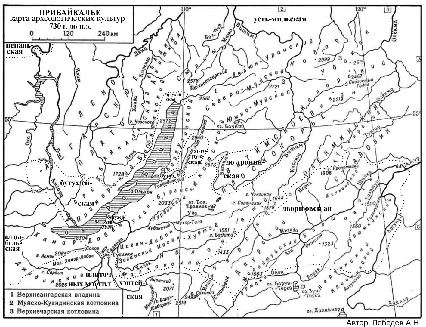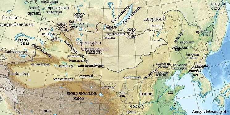 Рис. 4. Карта археологических культур Прибайкалья 730 г. до н.э.